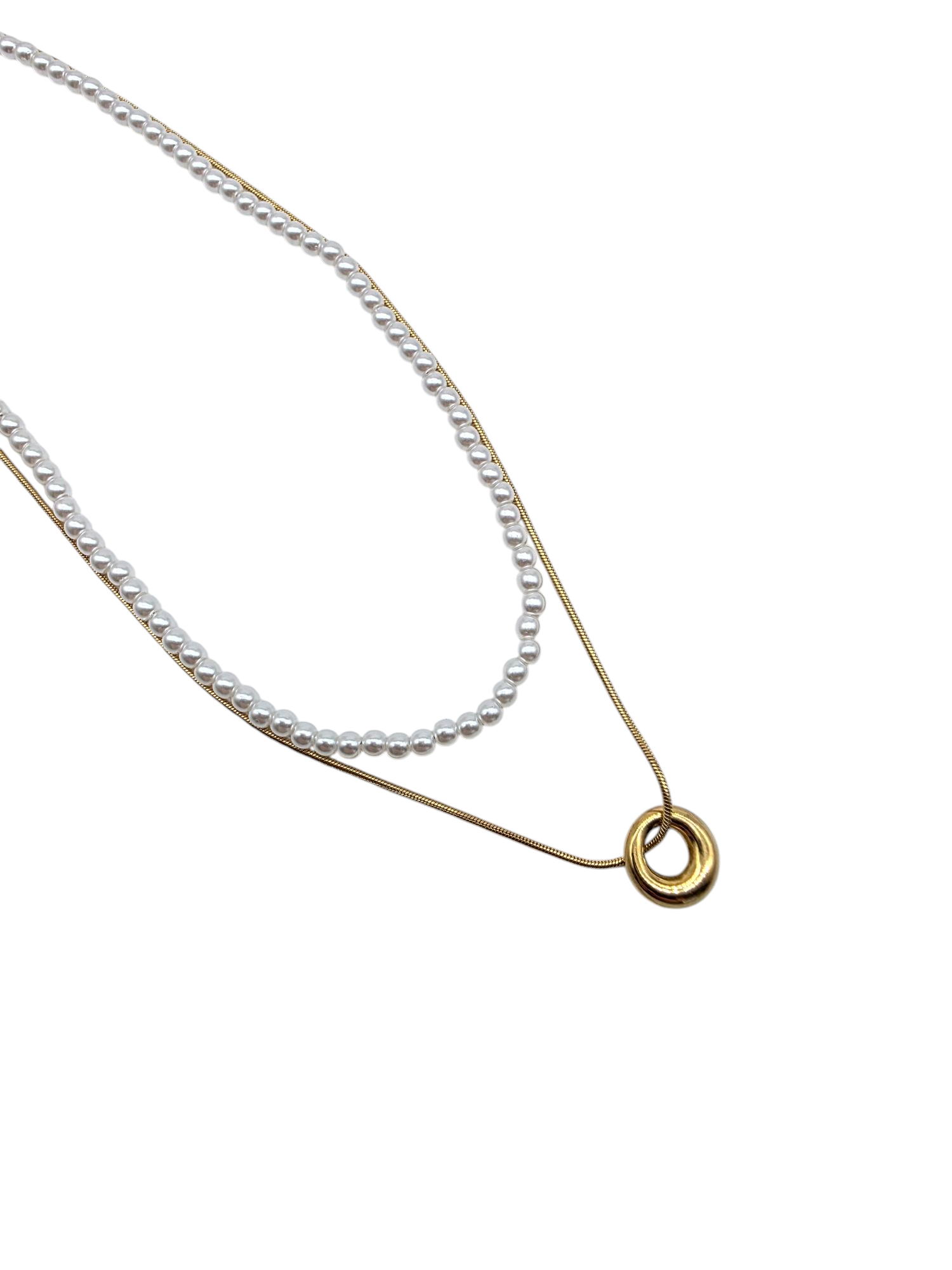 Kettenset mit Kunstperlen und einem feinen Ring-Anhänger