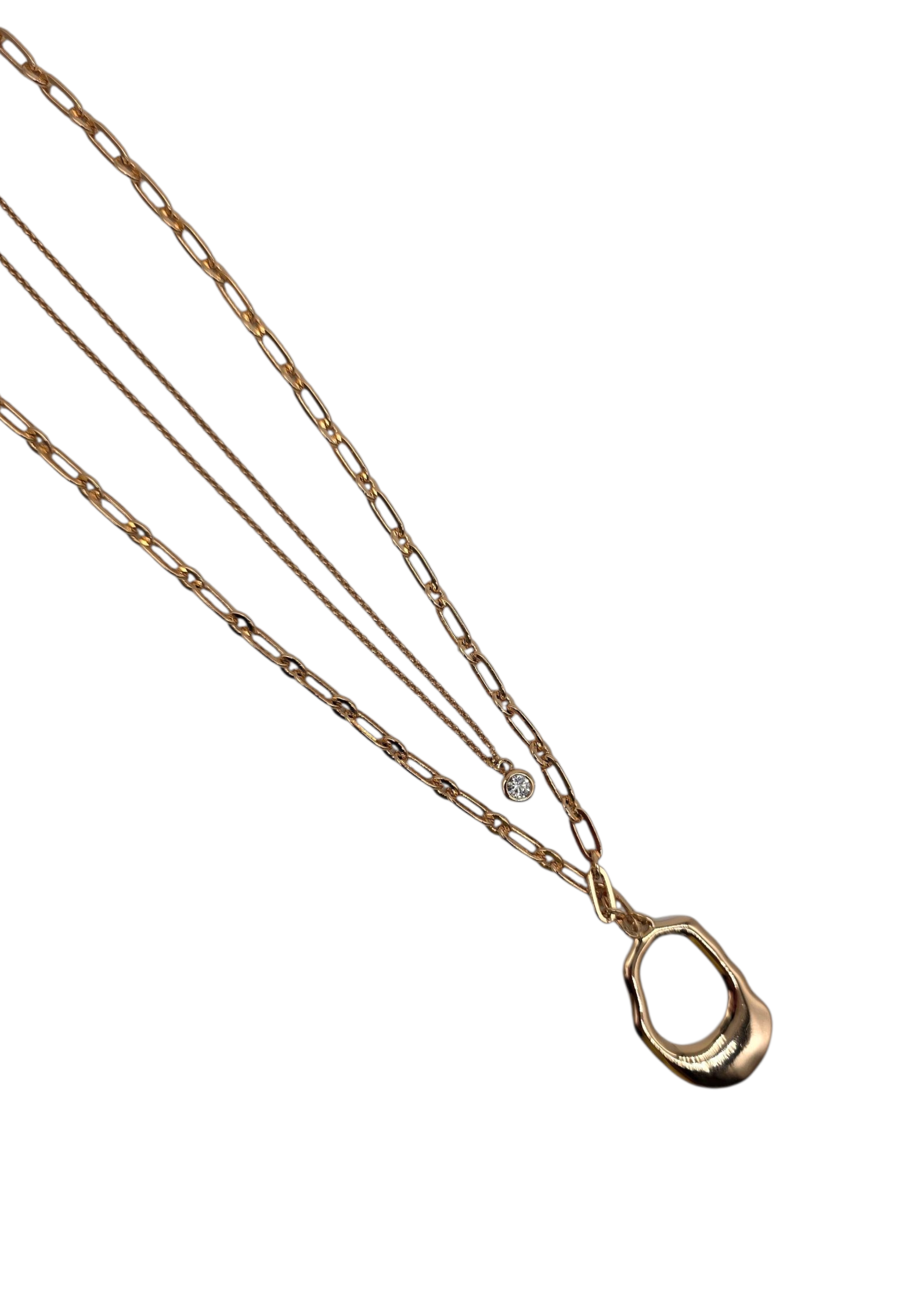 Vergoldete, doppelte Halskette mit einem austernähnlichen Anhänger und mit einem Zirkonia-Stein in zartem Roseton.