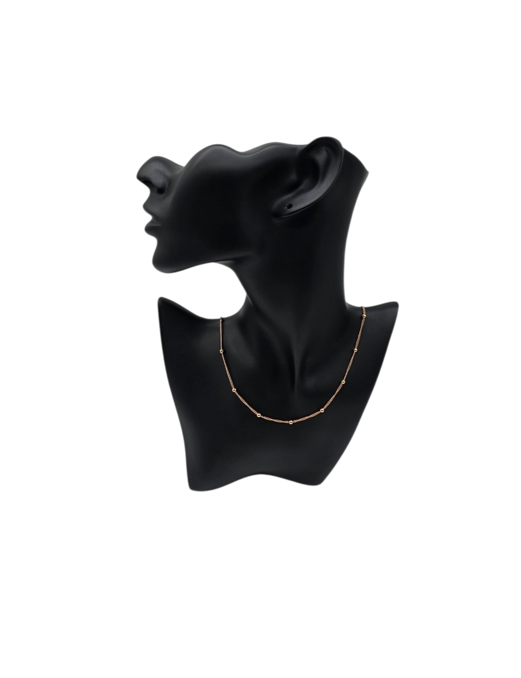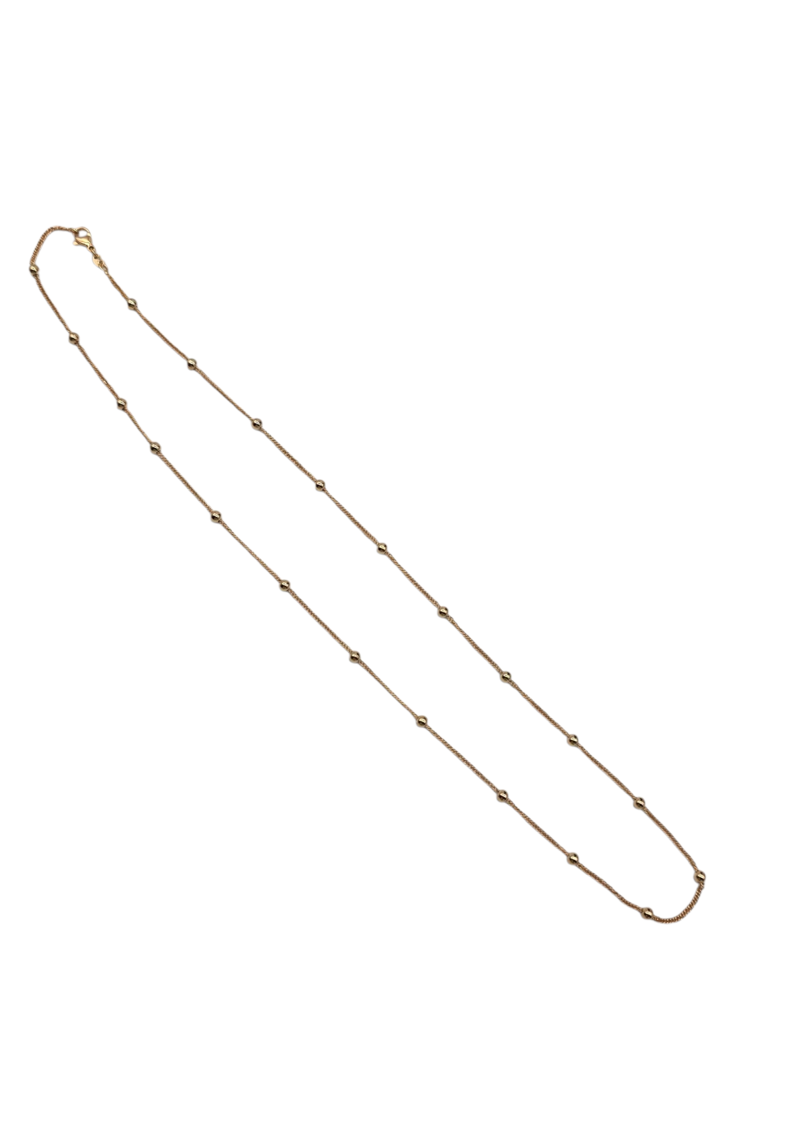 Vergoldete, gedrehte Halskette mit kleinen Kugeln in zartem Roseton